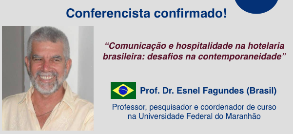 Mais um conferencista confirma presença no I Simpósio Internacional de Gestão da Comunição, Cultura e Turismo (SINCULT 2015). Trata-se do Prof. Dr. Esnel Fagundes (Professor e pesquisador da Universidade Federal do Maranhão), que vai falar sobre Comunicação e Hospitalidade na Hotelaria Brasileira: desafios na contemporaneidade.